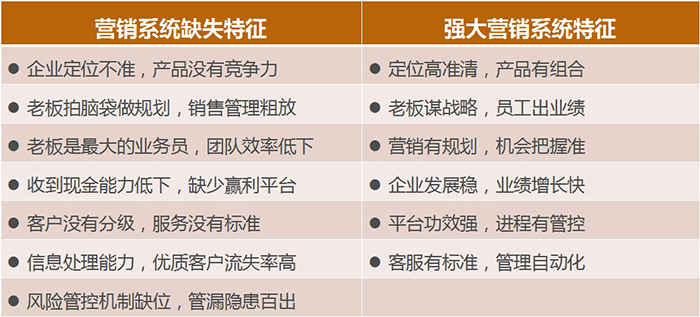 針對民營企業(yè)營銷系統(tǒng)建設(shè)滯后所造成的企業(yè)經(jīng)營績效低下、品牌影響力薄弱、市場開發(fā)效能無法最大化、營銷團隊薪酬考核設(shè)計不合理、業(yè)務(wù)流程混亂等經(jīng)營管理難題,《企業(yè)營銷系統(tǒng)》咨詢項目憑借強大的咨詢師團隊和資深的實戰(zhàn)經(jīng)驗,為企業(yè)提供系統(tǒng)性指導(dǎo)思路,傳授先進有效的管理方法,幫助成長型企業(yè)由小到大,由弱到強,完成企業(yè)在營銷架構(gòu)、業(yè)務(wù)流程、薪酬績效、品牌建設(shè)等方面的專業(yè)化提升,為廣大中小企業(yè)突破發(fā)展“瓶頸”,實現(xiàn)持續(xù)、穩(wěn)定的發(fā)展提供可靠的智力支持。